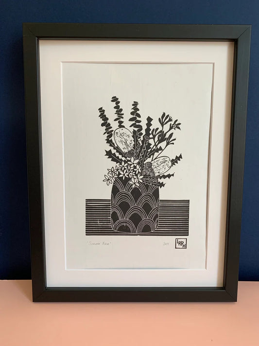 Little Rowan Red Head - Summer Vase Linoprint