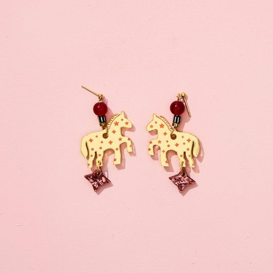 Star Horse Earrings - Gold / Pink