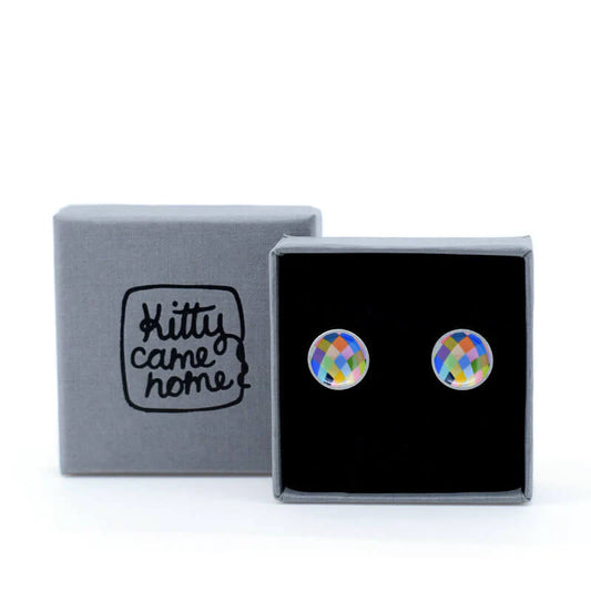Kitty Came Home - Harlequin Lines Domed Circle Stud Earrings
