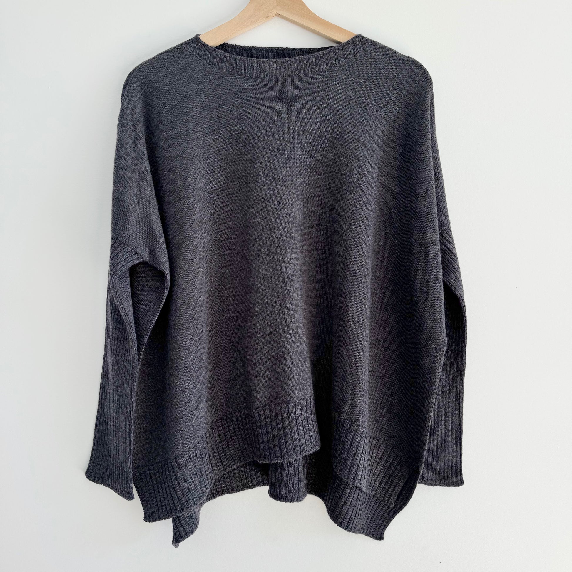 Elevate your everyday wardrobe with our premium 100% Australian merino wool jumper. Crafted locally with care, this casual knit features a relaxed, boxy silhouette with dropped shoulders and a fitted sleeve for effortless style and comfort. The front hemline is subtly curved with a side split and slightly longer back.