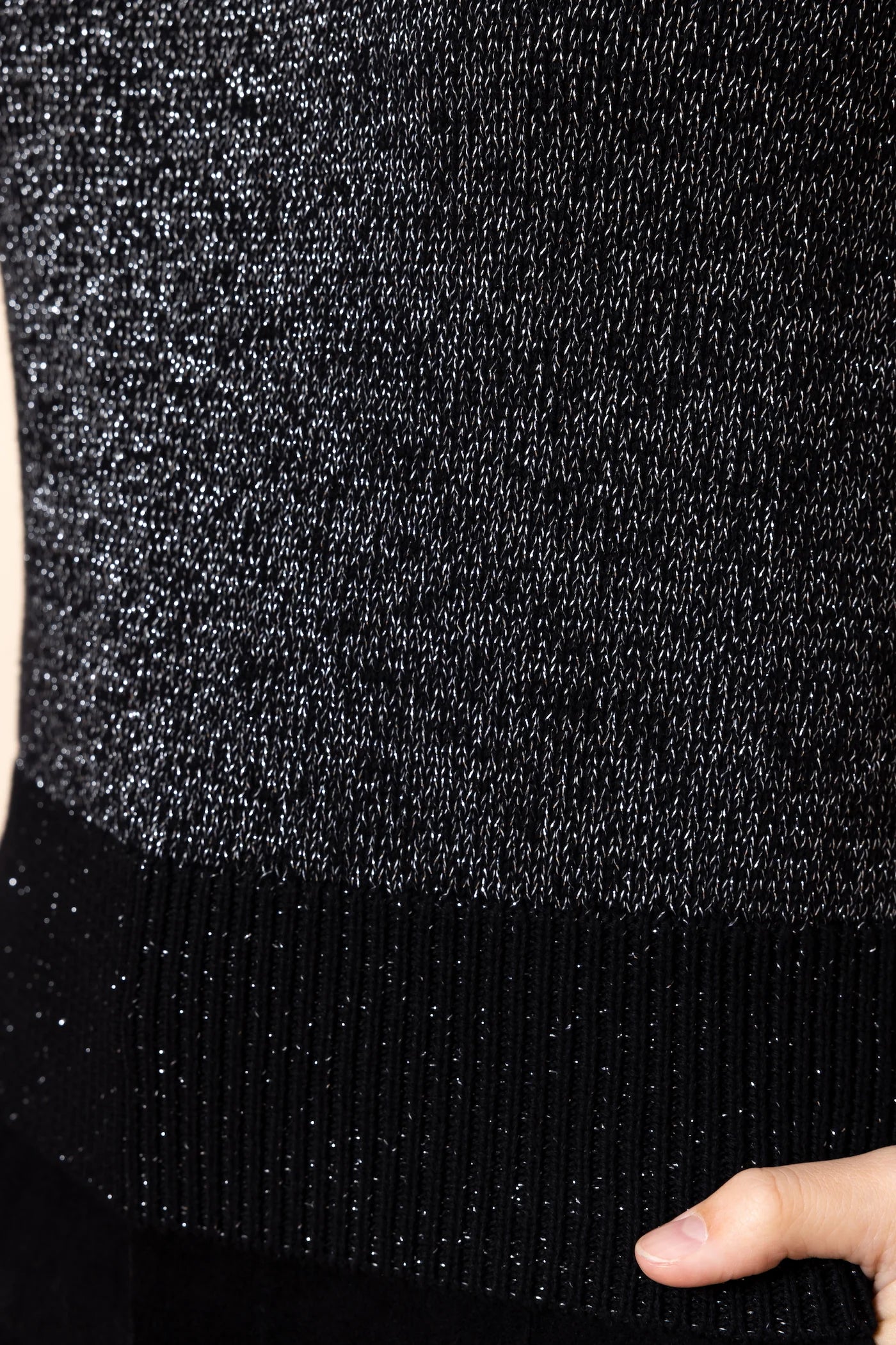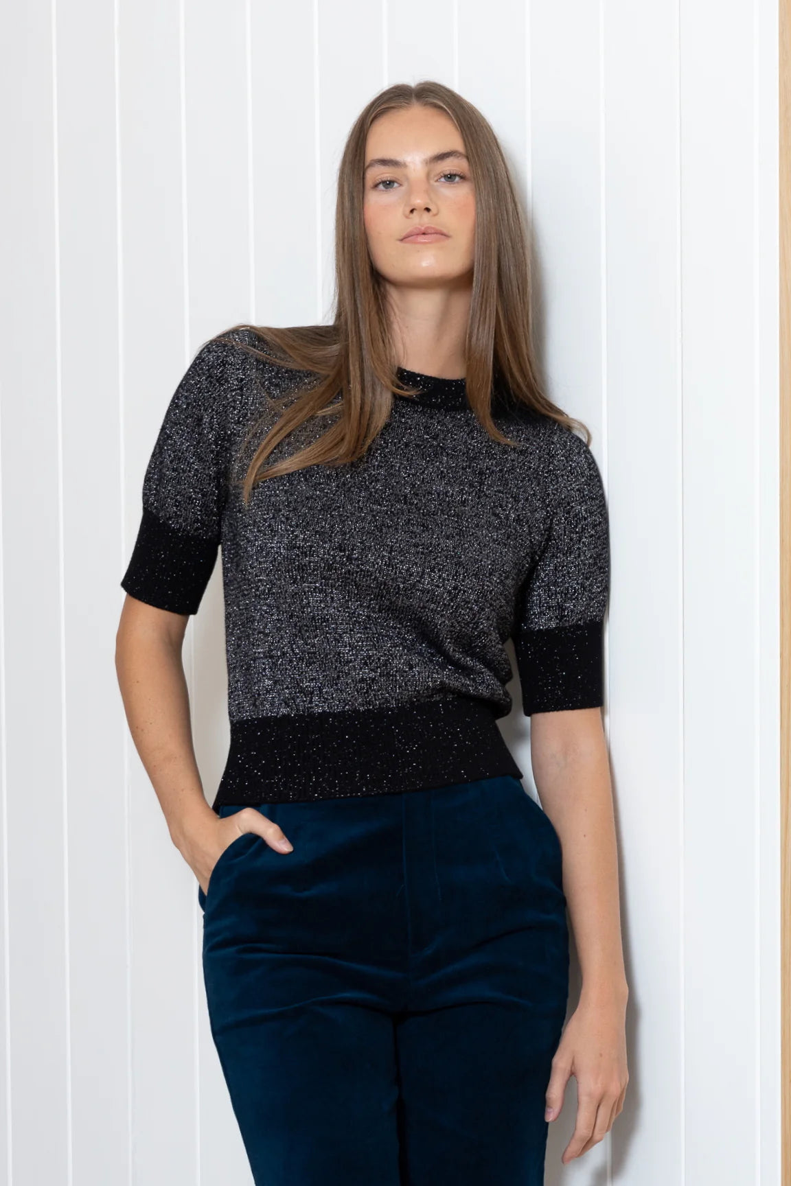 Black with Silver Lurex Elbow Sleeve Knit - Frock Me Out