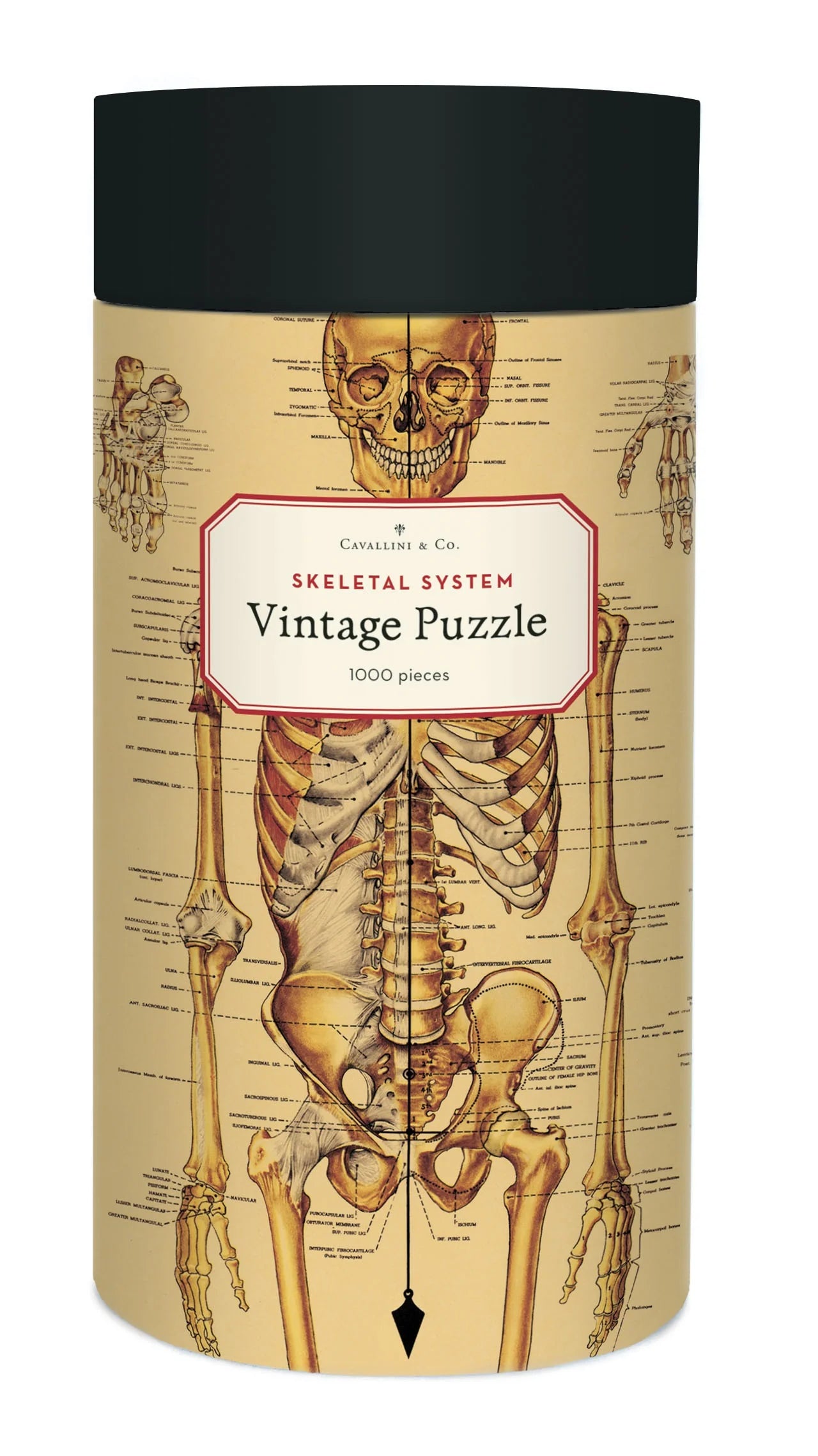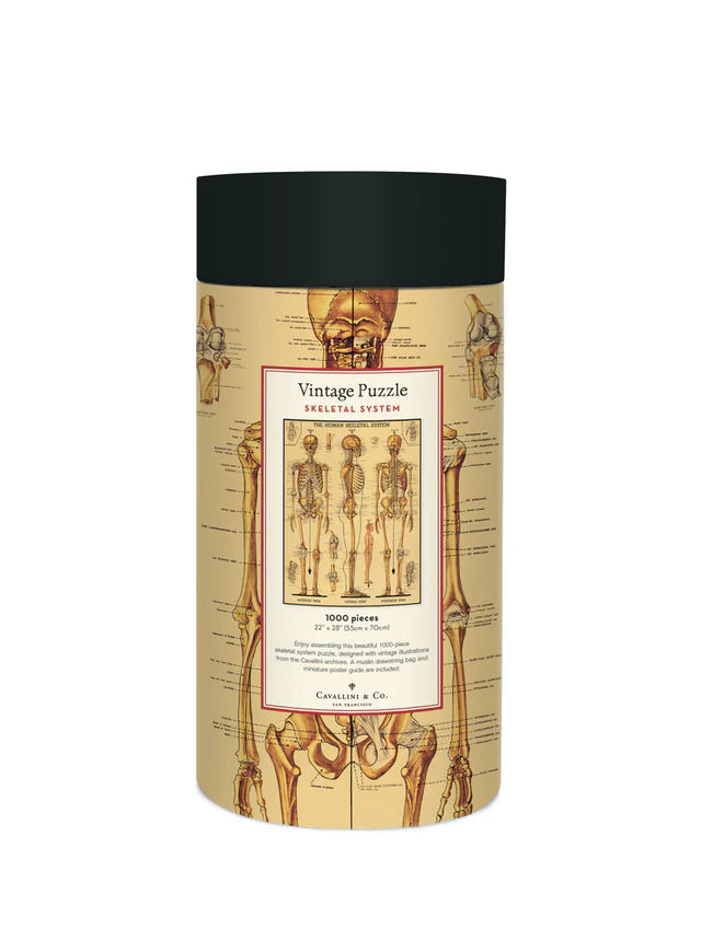Explore the structure of the human body with this detailed 1000-piece puzzle featuring vintage anatomical illustrations from the Cavallini archives. Showcasing the full skeletal system with scientific accuracy and old-world charm, this puzzle is perfect for anatomy enthusiasts, students, and vintage art collectors. Packaged in a 25 cm puzzle tube with a muslin bag and full-size poster guide.