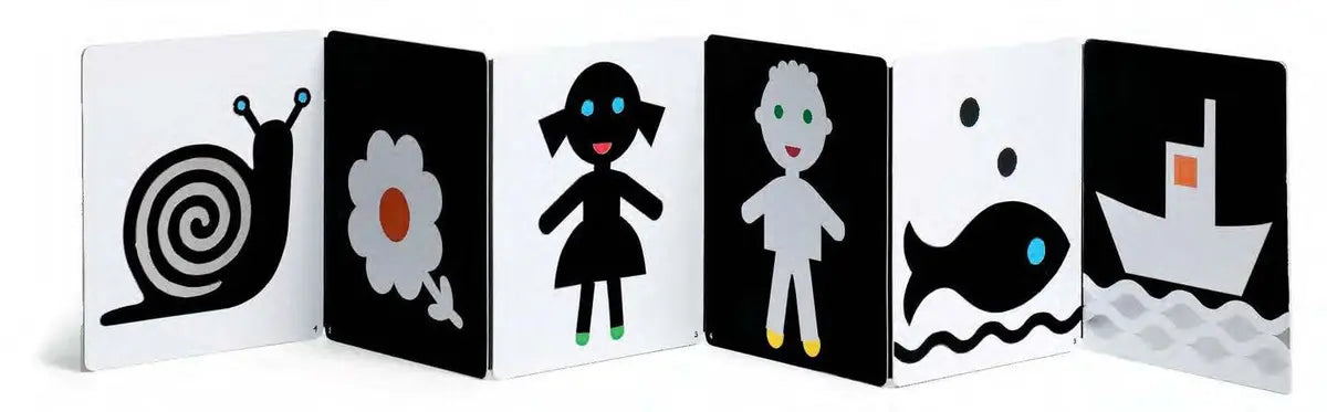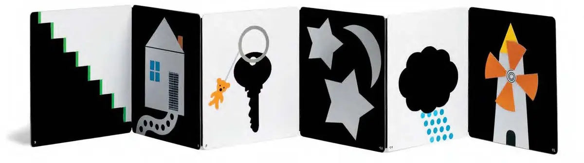 A high-contrast and tactile concertina board book, perfect for babies and tummy time.