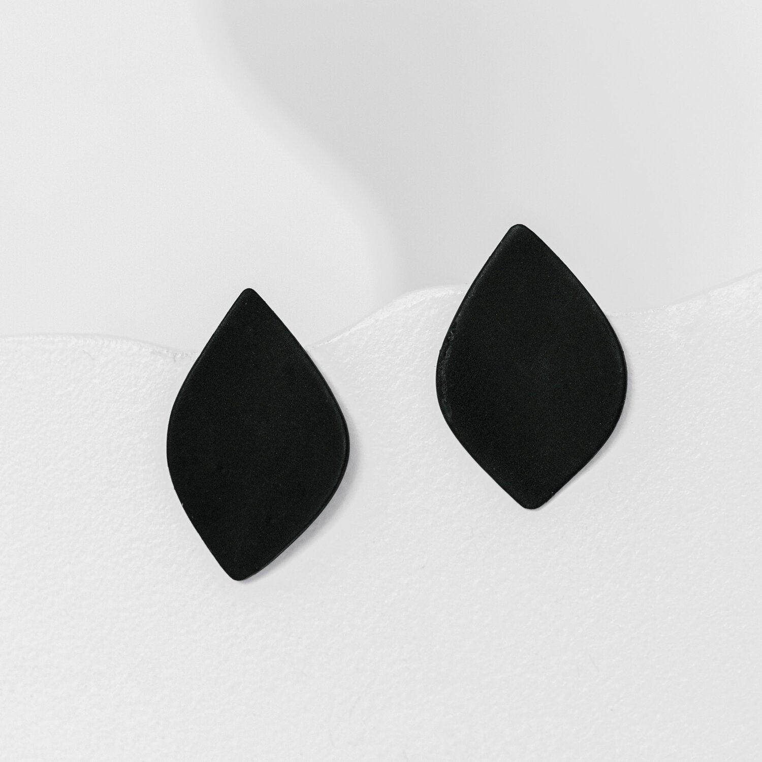 Made from brass with a matte black enamel finish and a sterling silver post.