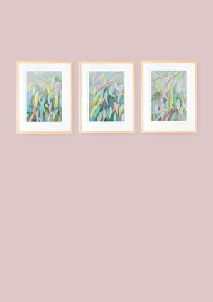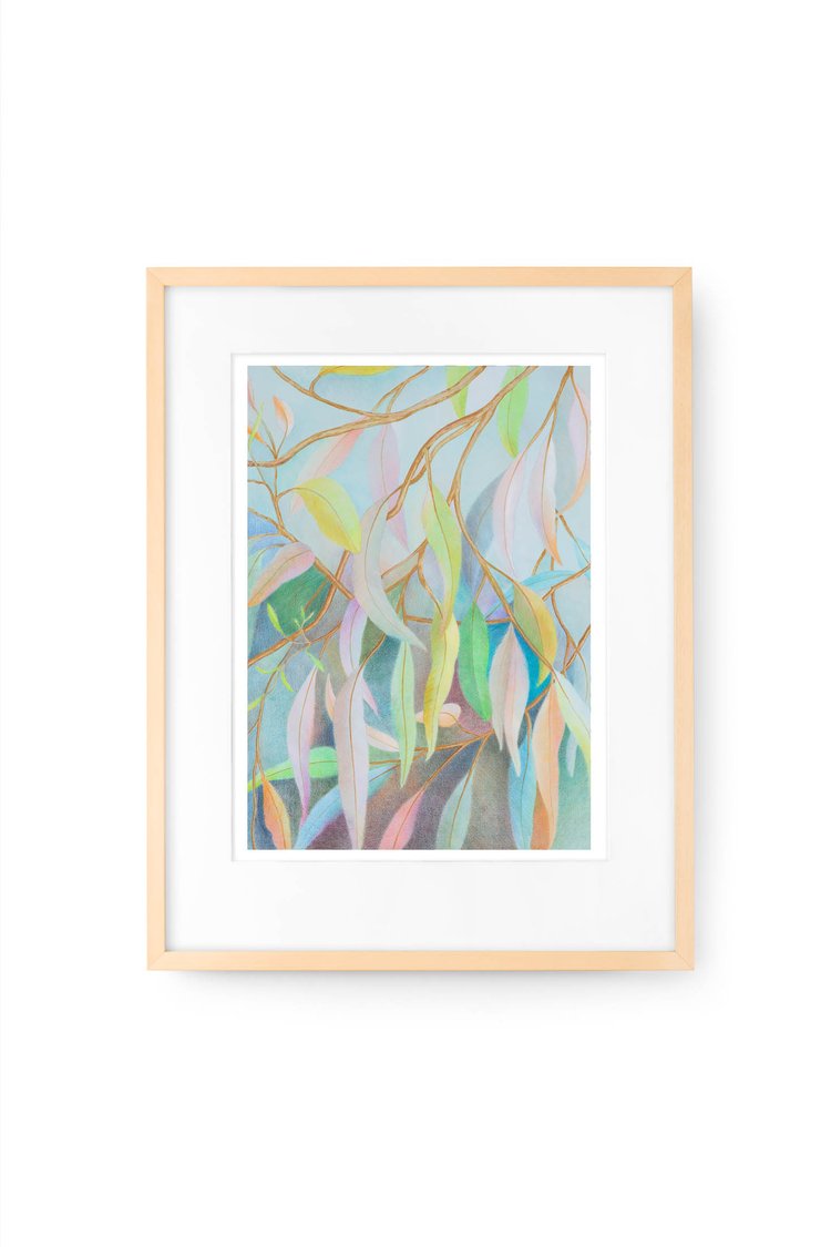 A colourful print featuring Australian Native Gum Leaves in soft hues