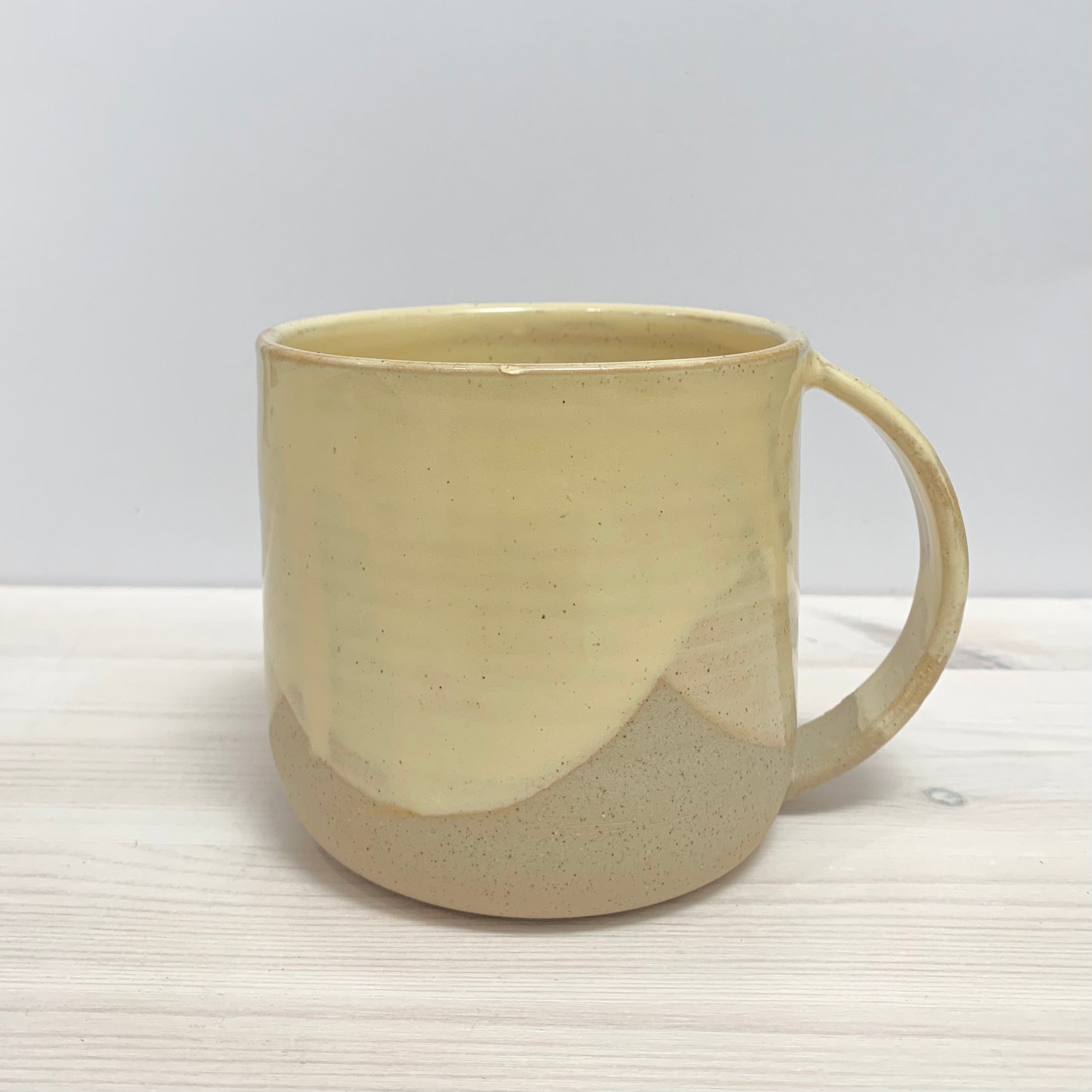 Generous sized mug dipped in a sunny yellow glaze. This a big mug, perfect for your big morning cuppa or soup in winter. Please note, this photo is a guide only. Each mug is handmade and variation does occur.