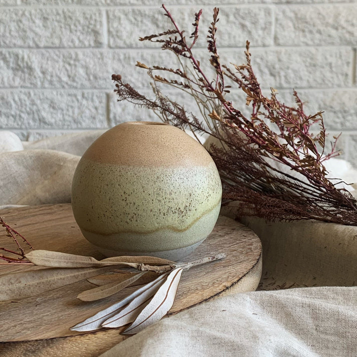 Henry and Tunks Bud vase - Toffee and Earthy Green