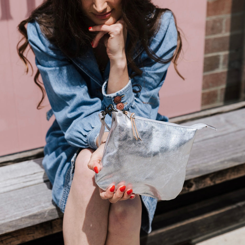 A classic pouch style cross body bag or clutch, Dusky Robin’s Castle in the Sky bag features: - zip closure - simple, classic design - signature Dusky Robin internal details - removable + adjustable cross body strap - wrist strap - cute knotted zip tag feature 21 x 19 x 3.5 cm