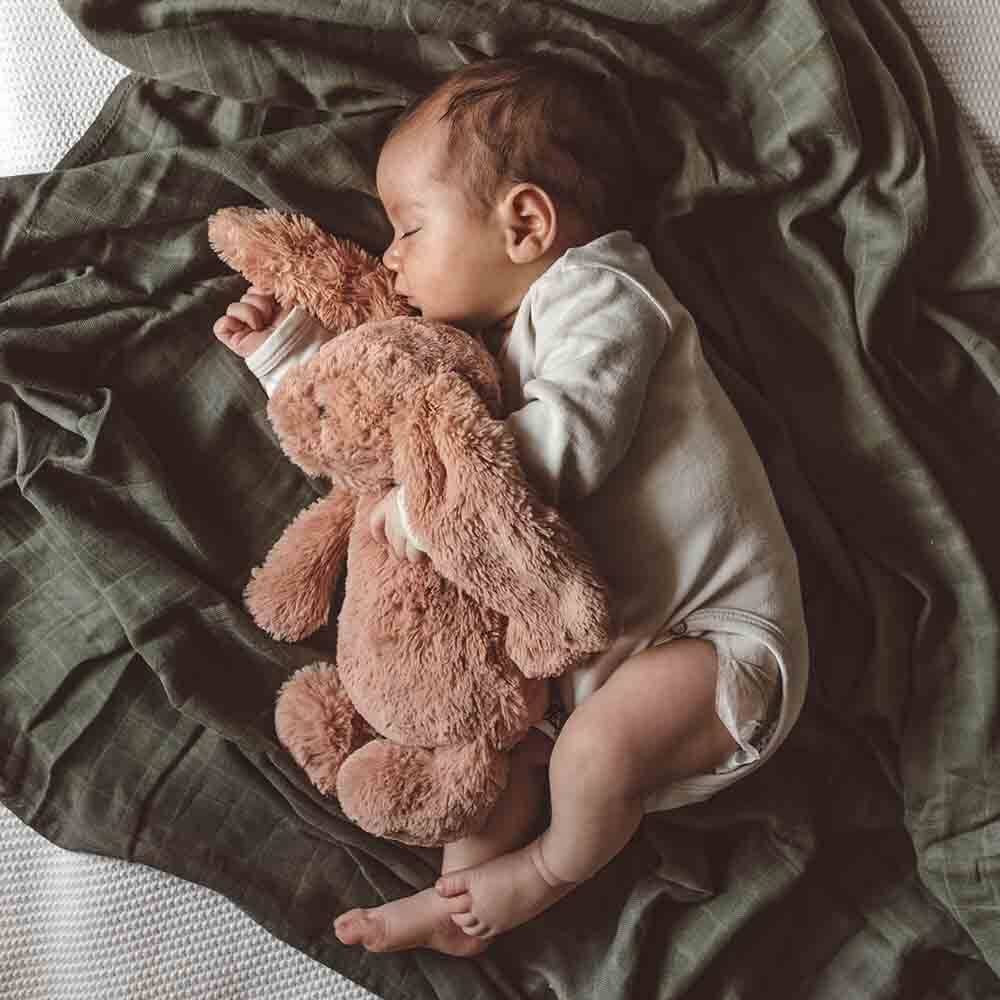 This soft organic cotton muslin wrap features a gorgeous dusty olive colour with a subtle woven check. It is a beautiful multi-purpose wrap ideal for swaddling and wrapping bub.