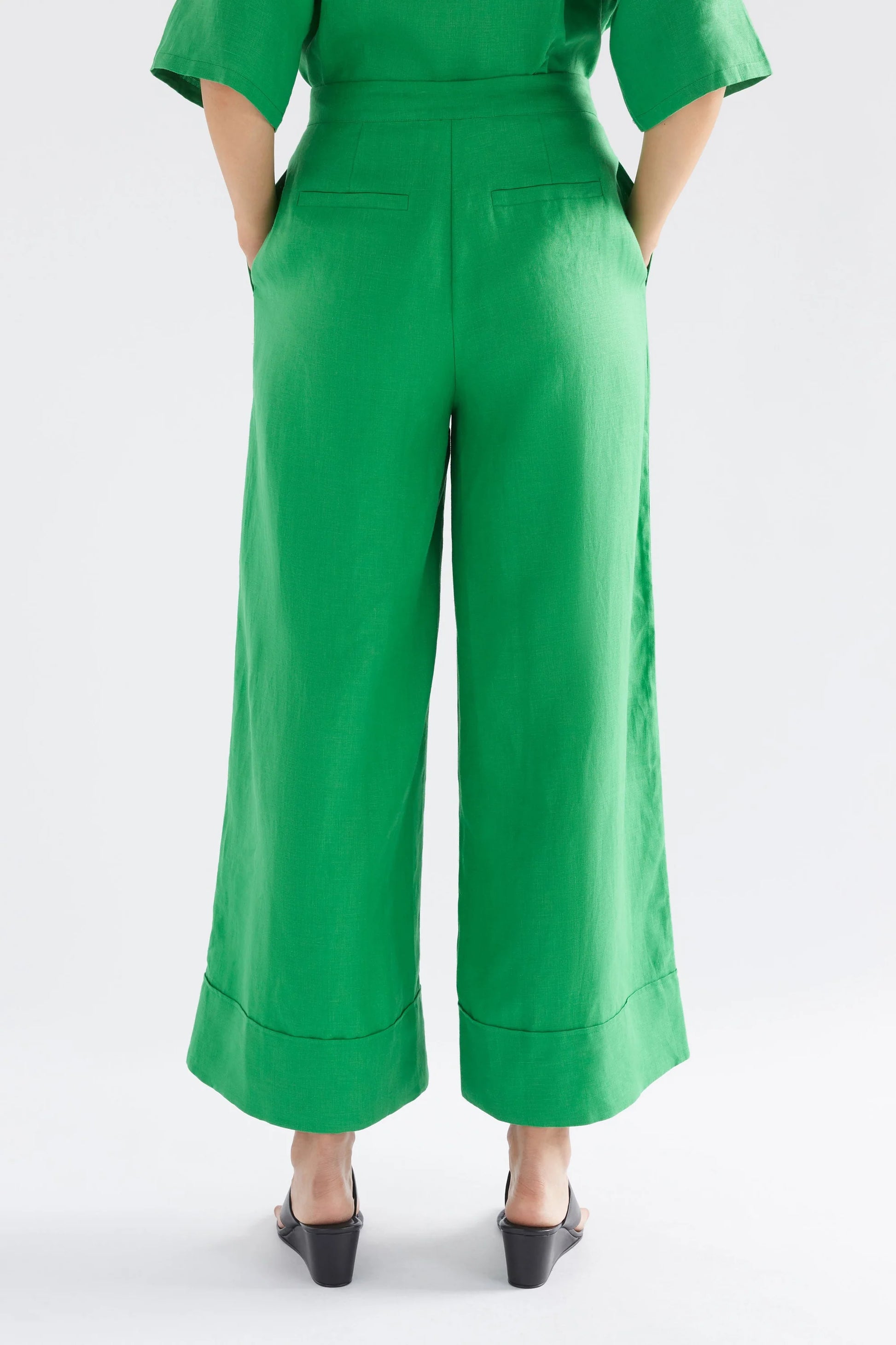 The Anneli Light Linen Pant is an ELK signature staple, offered in a vibrant summer-weight French flax linen. A pop of colour and statement cuff detailing instantly transform a simple wide-leg trouser into the perfect wardrobe building block. This wide leg pant, features a mid-rise waistline, and a full length leg. The pant has a flat fitted waistband with a button and zip fly at the front, along with an internal button at the waistband for added security. Crafted from French linen, the Anneli Light Pant is breathable and durable, and softens with wear.