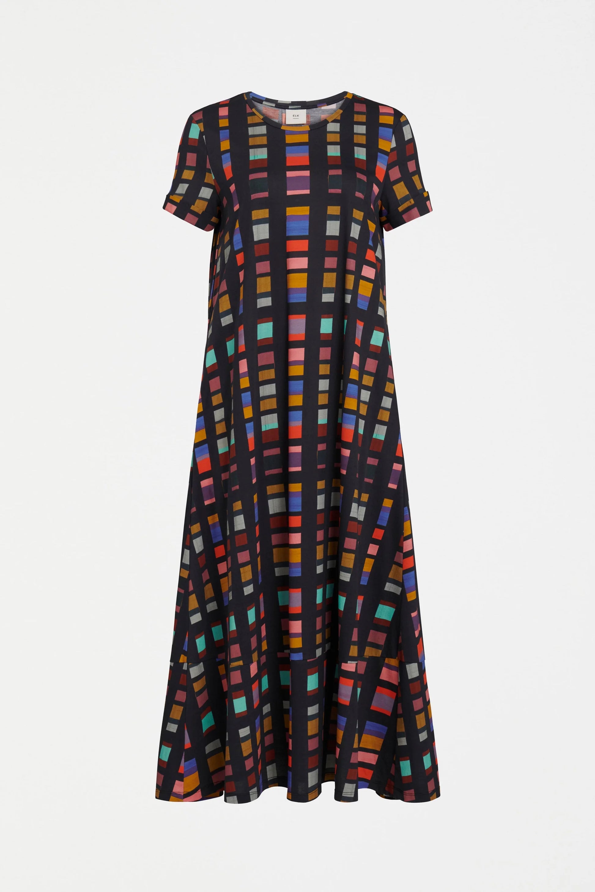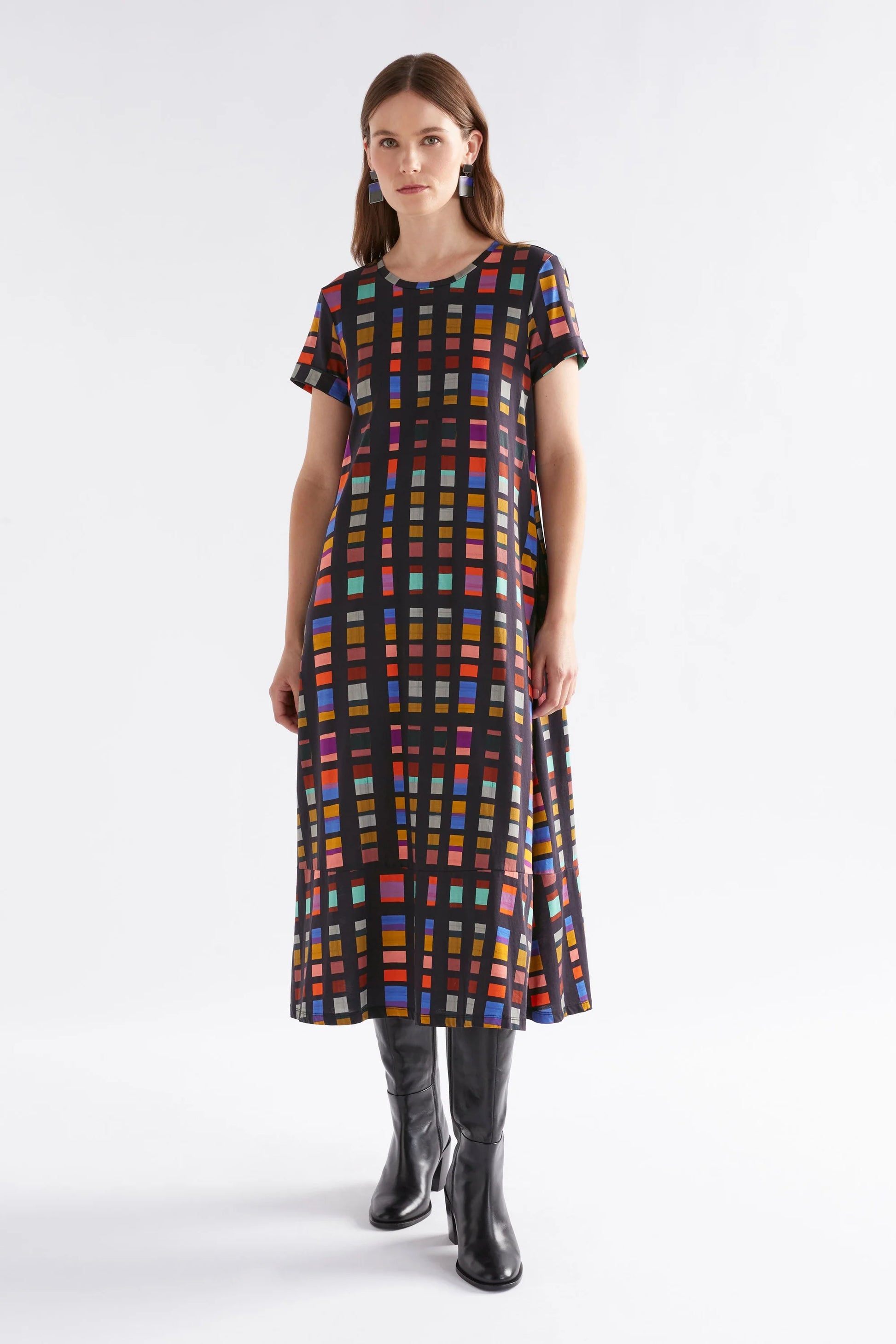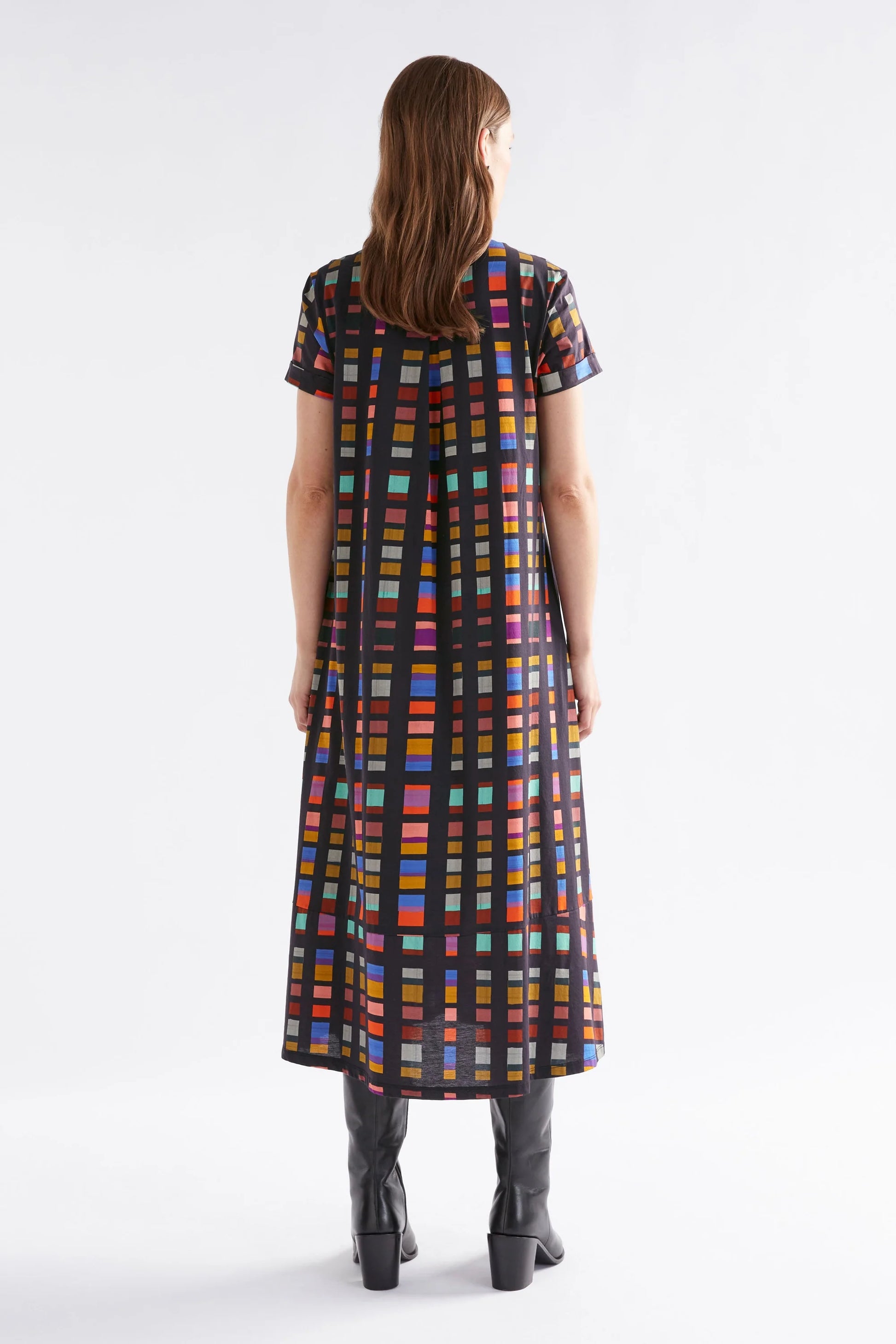A striking print that feels as good as it looks. The Haki Dress is a relaxed t-shirt style crafted from soft organic cotton, featuring an all-over print that makes a statement. The A-line silhouette swings with ease, while fixed, rolled cuffs and an inverted box pleat at the back add distinctive details. Finished with functional side pockets, the Haki Dress is the ultimate piece for mastering work-to-weekend styling. Now offered in the limited seasonal Tessela Print - a bold yet versatile print with hues that pair effortlessly with your wardrobe staples.