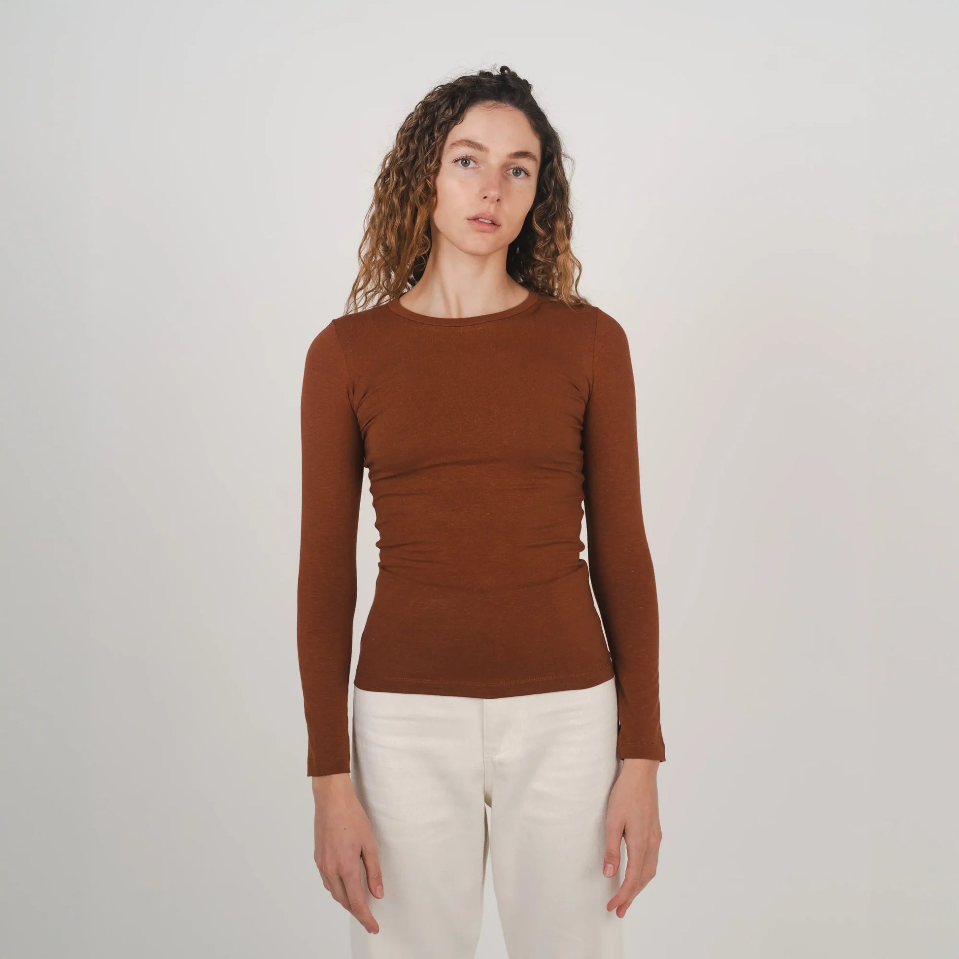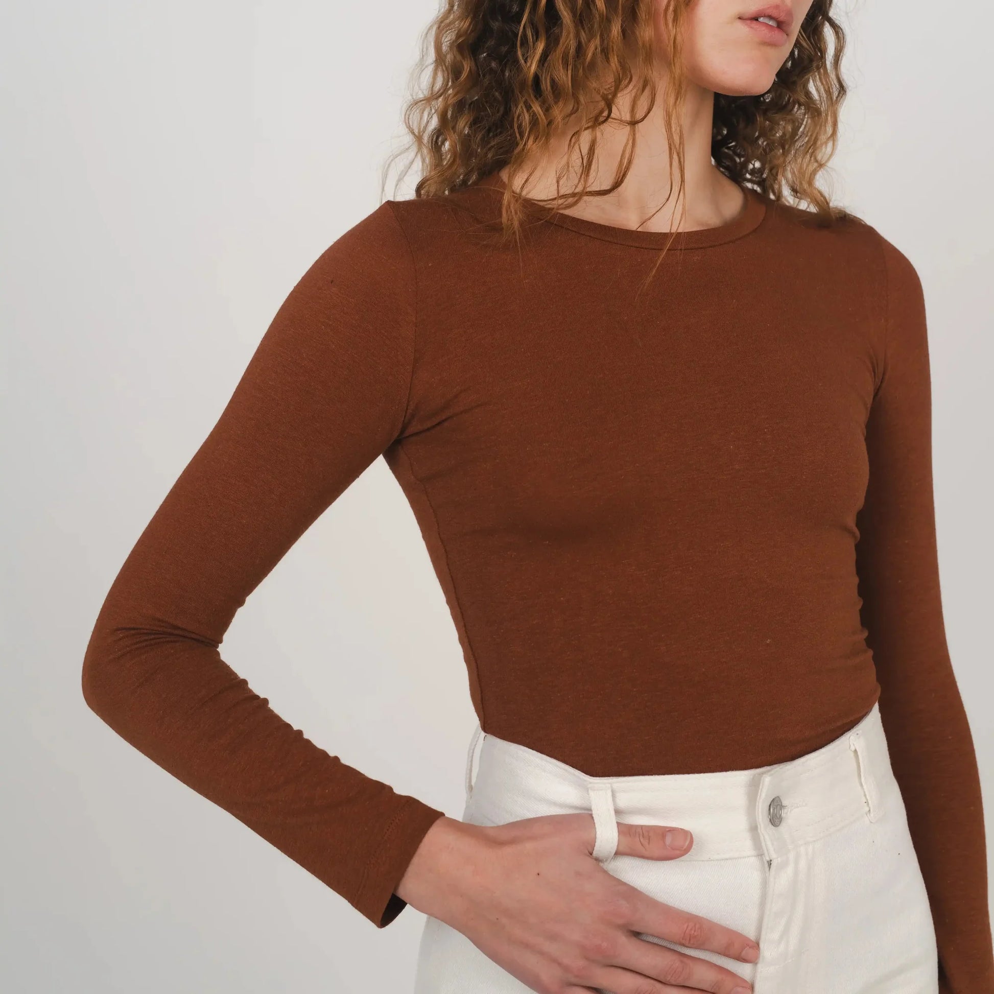 An essential layering piece, this stretch long sleeve top is crafted from breathable hemp and organic cotton with 5% spandex for added stretch and comfort. Featuring a crew neck and long line length, it’s ideal for layering and designed for all day comfort.