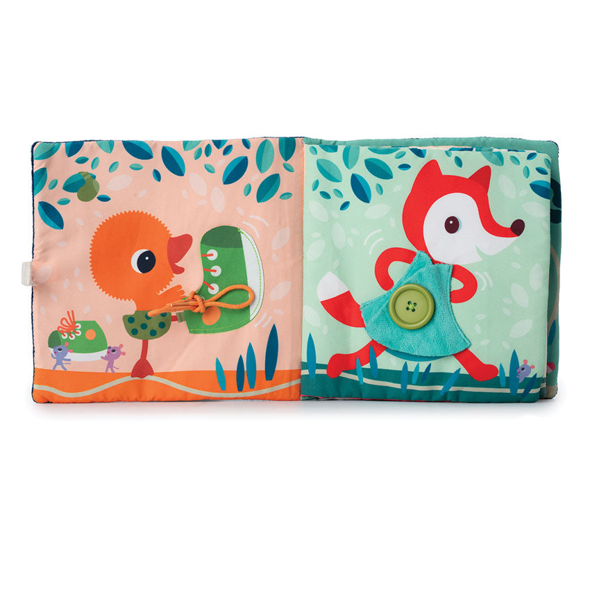 Get ready for hands-on fun with this cheerful soft Learning to dress book featuring Jules the dog! Each page is packed with playful challenges- zippers, buttons, laces, and belts - perfect for little hands to explore. As they help the characters get ready for an exciting pond adventure, children sharpen their fine motor skills and boost coordination to master their dressing skills and fostering independence.