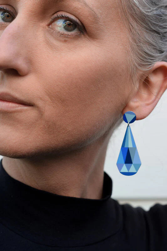 Lapis lazuli, sapphire, labradorite, topaz and aquamarine! A fun colourful take on faceted blue gems by Australian artist Claire Ishino.