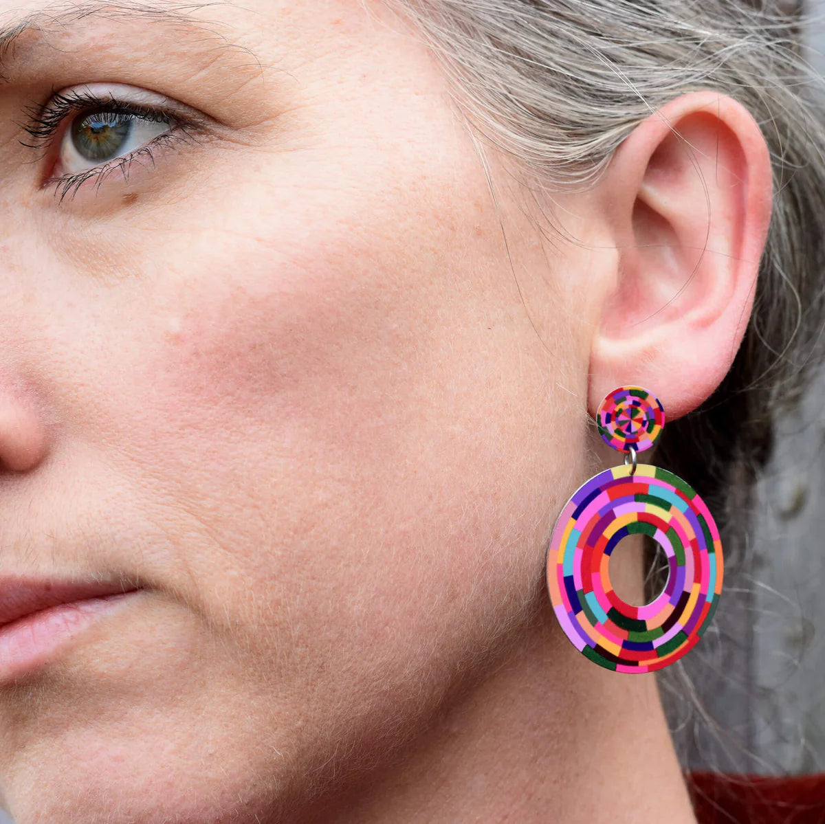 Kitty Came Home - Rosey Posey Circle Drop Studs