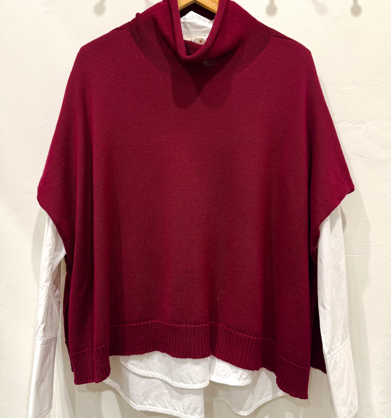 Sophisticated and luxurious, the soft touch and breezy design is what you'll love the most about this garment. A modern take on the Poncho, includes a single shell button on each side to create a soft sleeve. The neck line is feminine, draping softly into the garment. Light weight and warm, this relaxed fit lends well to layering.
