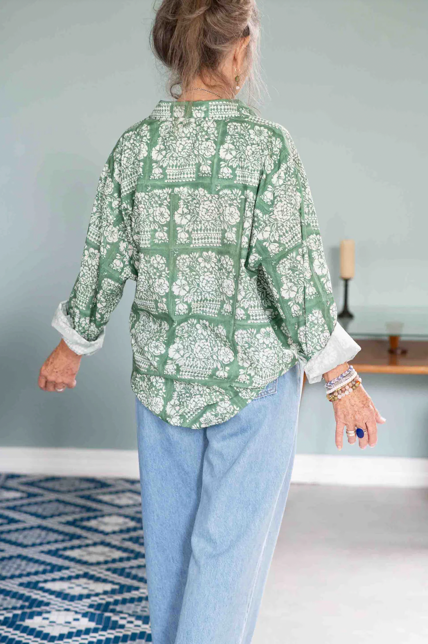 With a small collar that can be worn buttoned up or open. Long sleeves for good sun coverage or can be rolled up.
