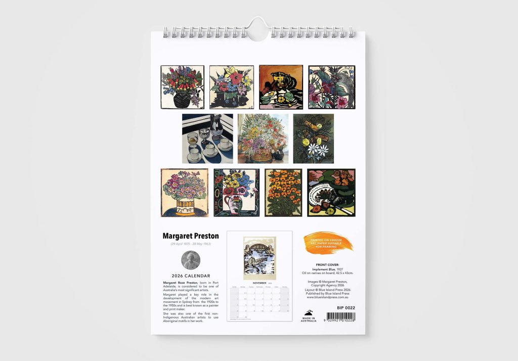 Beautiful spiral bound wall calendar - 230 x 320mm - printed single sided on high quality, archival grade paper stock. The 'frame-worthy' selection of twelve stunning images makes this calendar a perfect, lasting gift and an easy size to post. Published by Blue Island Press in Sydney. 100% Australian Made.