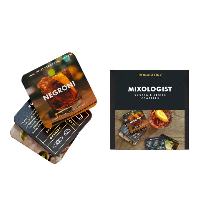 Master cocktail hour with these useful recipe cards. A simple guide to making cocktails. Clear and simple instructions with the necessary equipment and skills shown as icons. A great gift for the hard partying folk who enjoy a pink parasol in their drink.