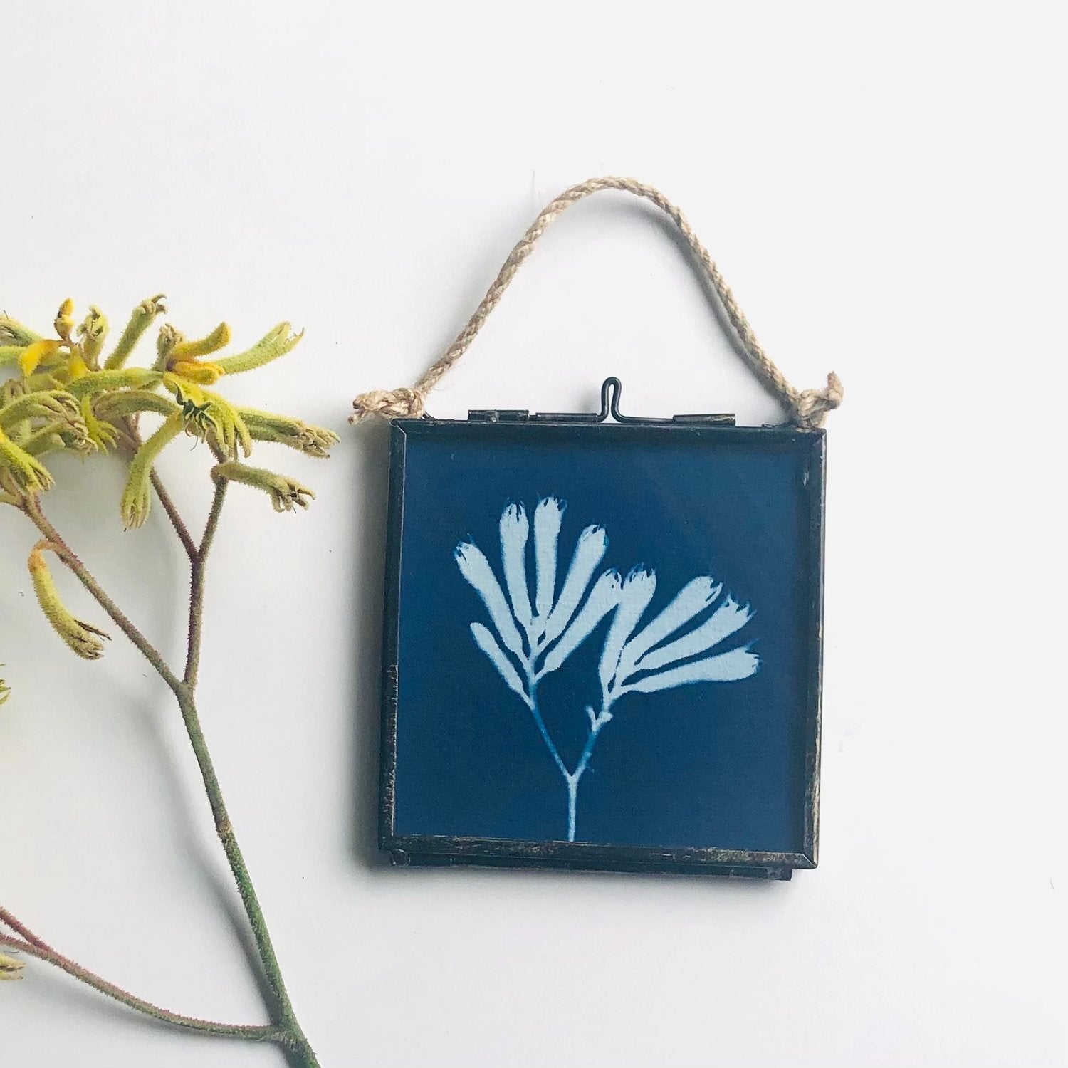 Mini Original Cyanotype in a double glass metal hinged frame. Made in Adelaide by Tracey from My Little Print Studio