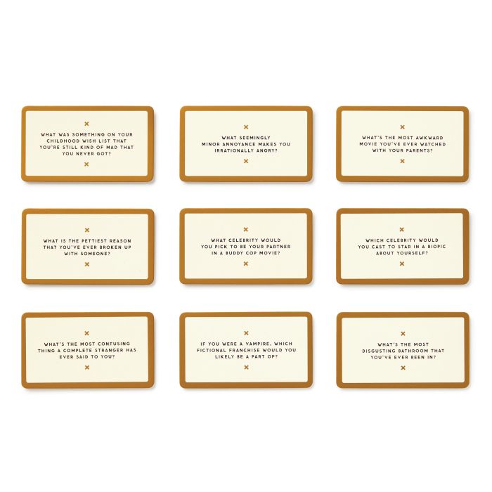 Topics like ‘What’s the pettiest reason you’ve ever broken up with someone?’ and ‘What’s a secret talent no one in the room knows you have?’