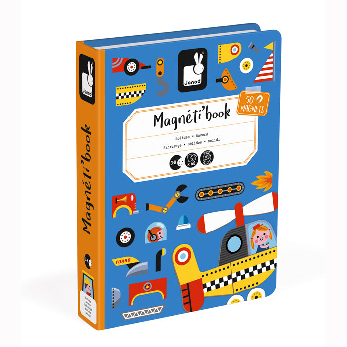 The Racers Magnetic Book allows you to create different vehicles using the magnetic pieces. Select one of the 18 cards and then match the magnetic pieces to copy the card. Alternatively you can be creative and mix and match to build your own super cool transport. The 50 pieces and 18 cards all store away in the magnetic book when not in use and is one of many to choose from in the Janod Magnetic Book range. Great for play on the move or holidays.