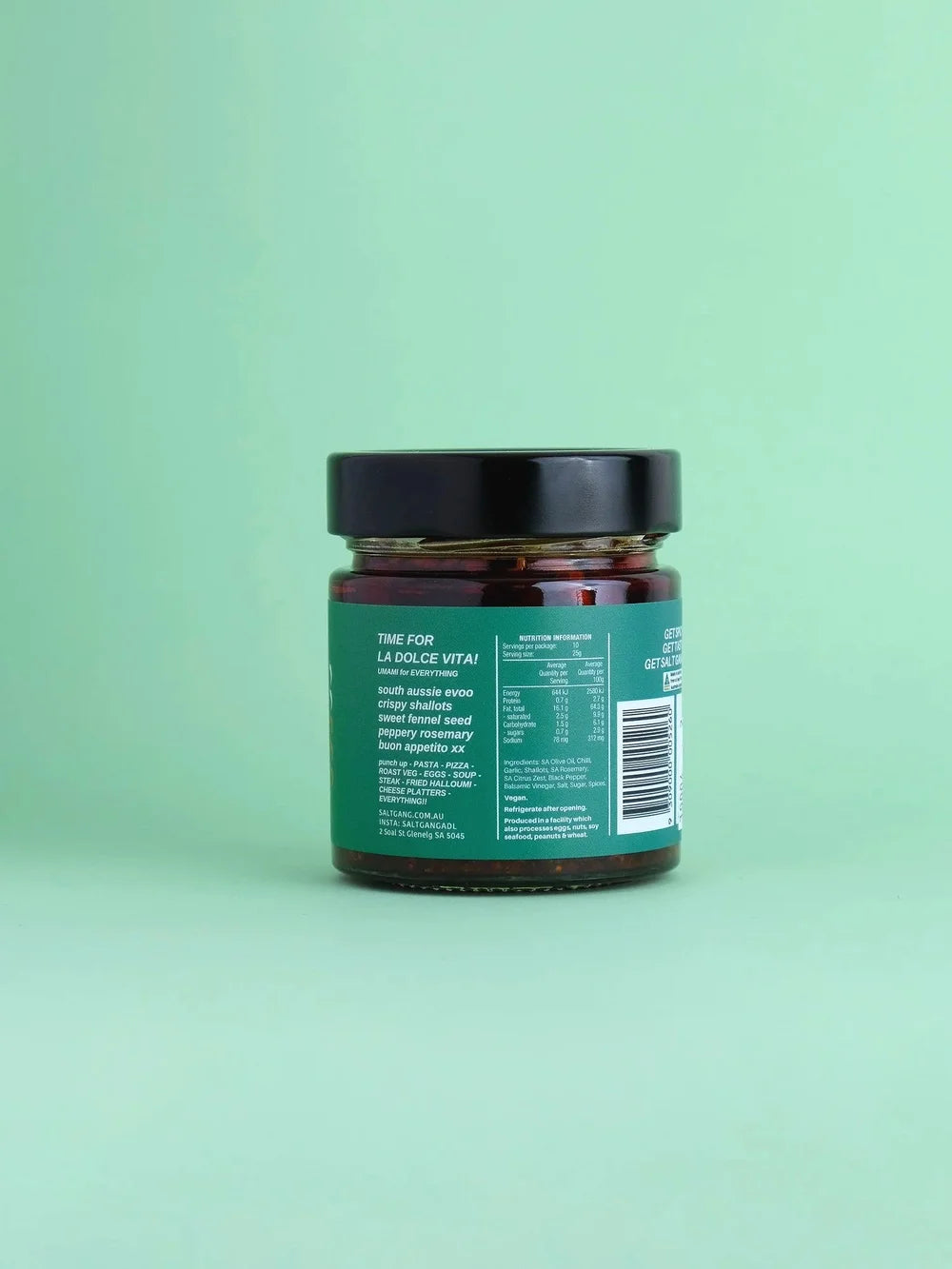 Fresh South Australian extra virgin olive oil with caramelised garlic and zesty citrus, crunchy fried shallots, a whisper of sweet fennel and a lick of aged balsamic for balance. Italian leaning, sunny, spoonable..