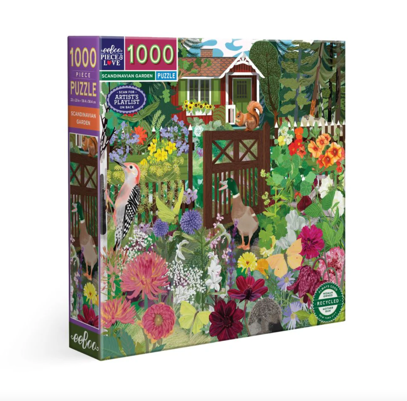Experience the serene beauty of nature with eeBoo’s 1000-piece Scandinavian Garden puzzle. This charming design transports you to a whimsical Nordic landscape, with scenes filled with native flora, curious woodland creatures, and quaint Scandinavian-inspired details. Featuring artwork by Ceclia Pettersson.
