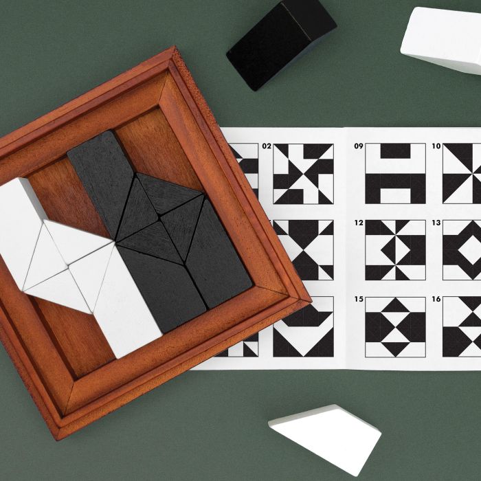 This deluxe puzzle set includes 16 black & white abstract wooden pieces and comes with instructions on how to play, puzzles to solve and solutions.
