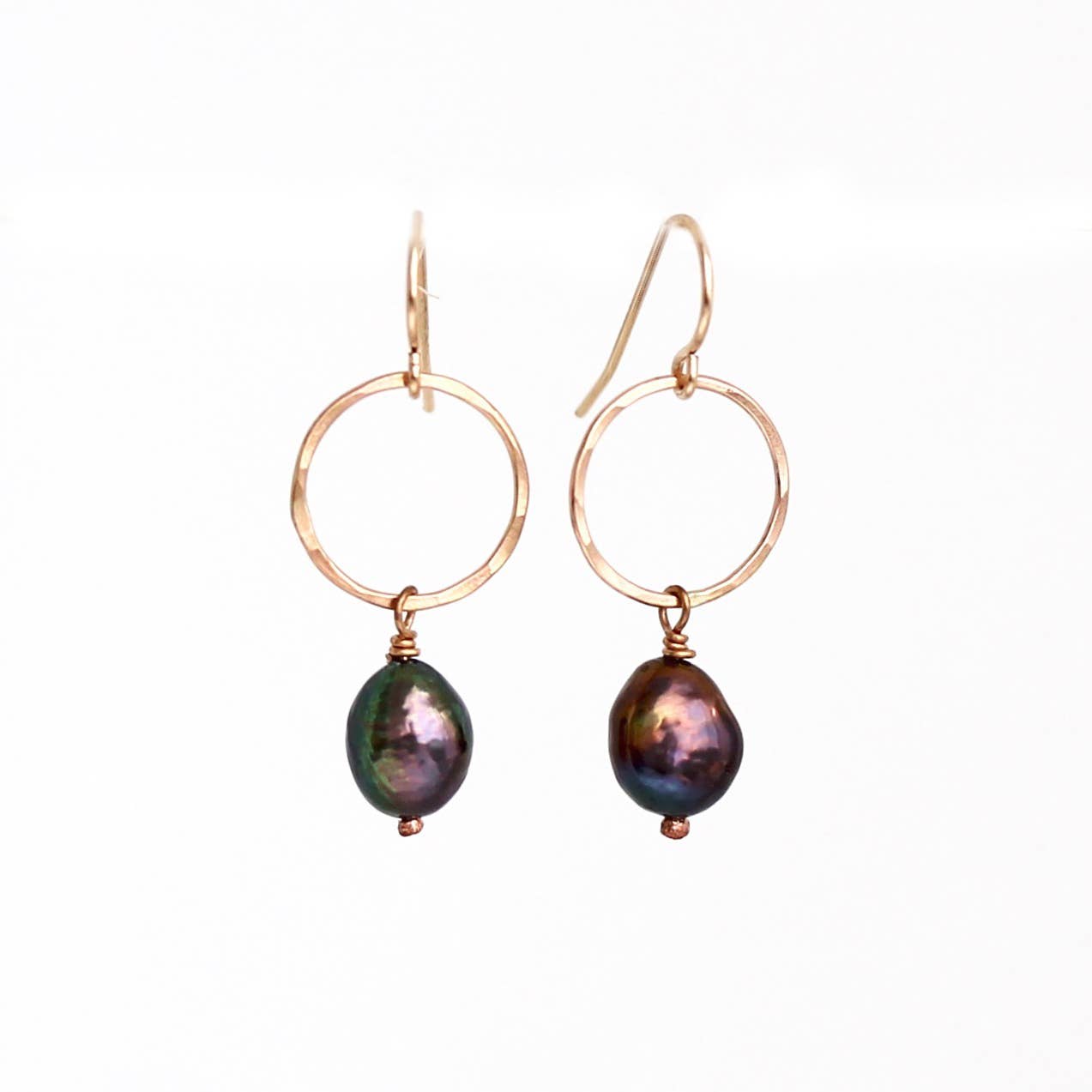 Natural black freshwater pearl, gold filled or sterling silver. Measures approximately 3 cm Please keep in mind that all gemstones are completely natural so each piece will be similar though different, reflecting the uniqueness of nature.