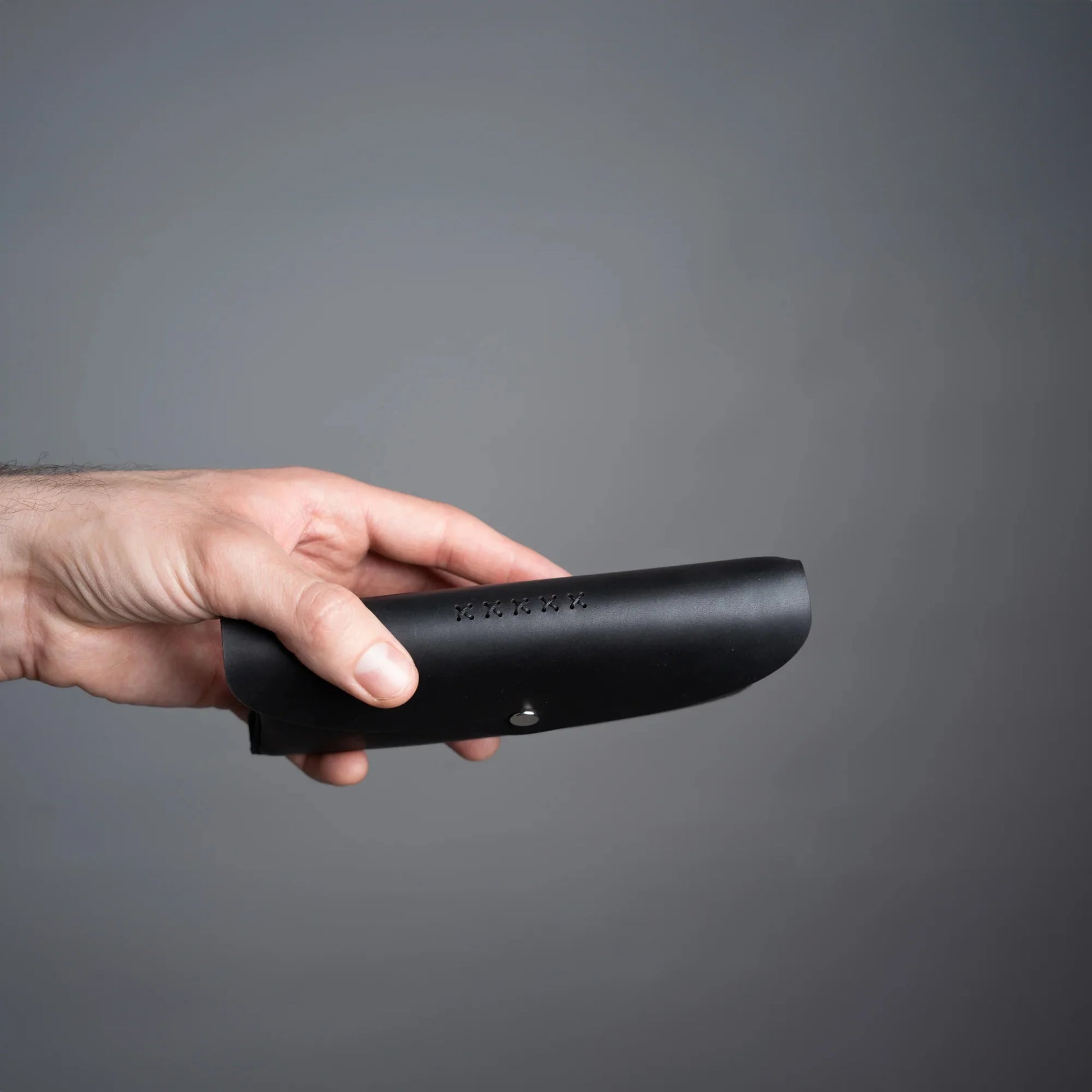 - Premium, ethically produced, vegetable-tanned leather in black colour