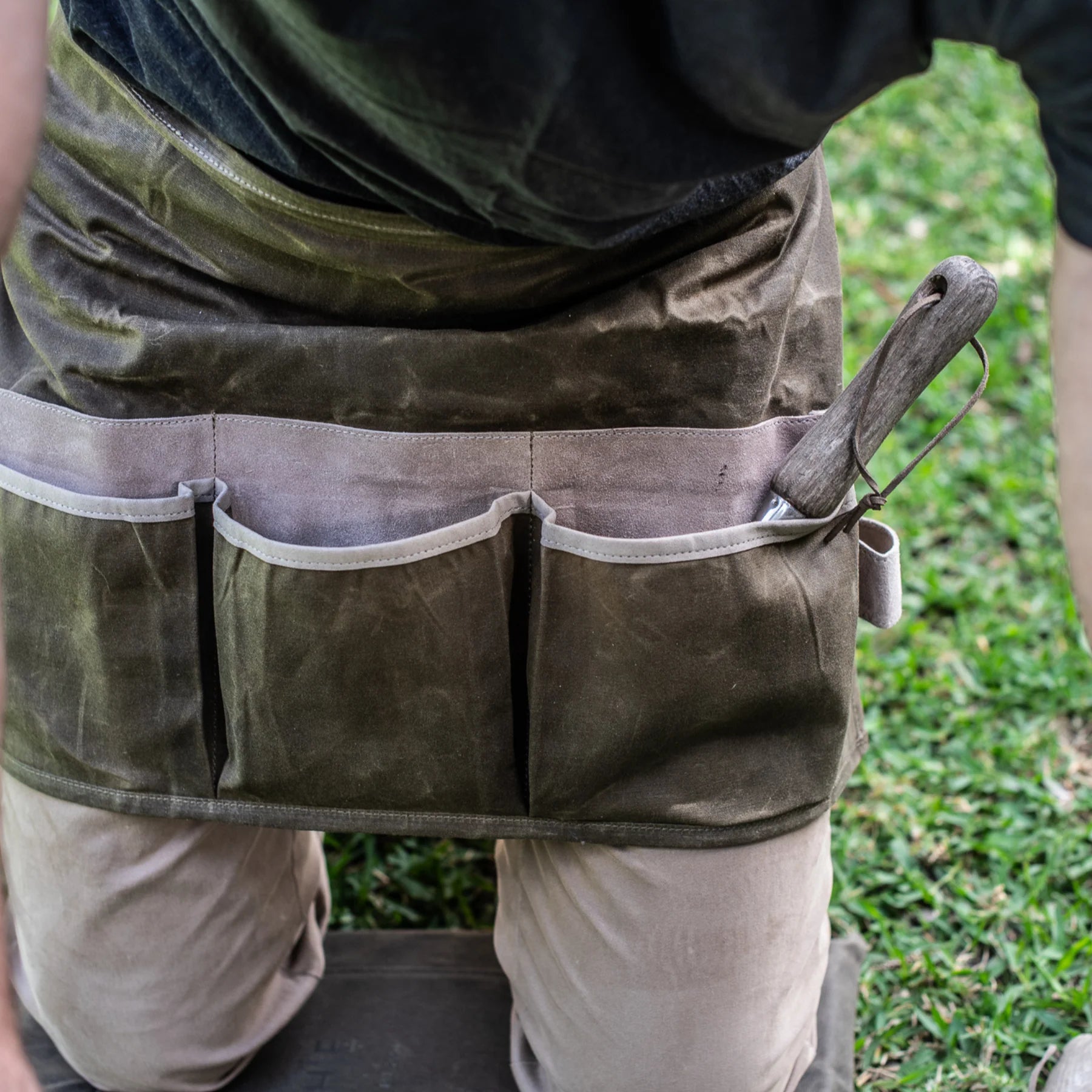 Designed for hands on garden work, the Waxed Canvas Garden Apron is a practical half apron that keeps tools close and clothes protected while you potter, harvest and tend to the garden.