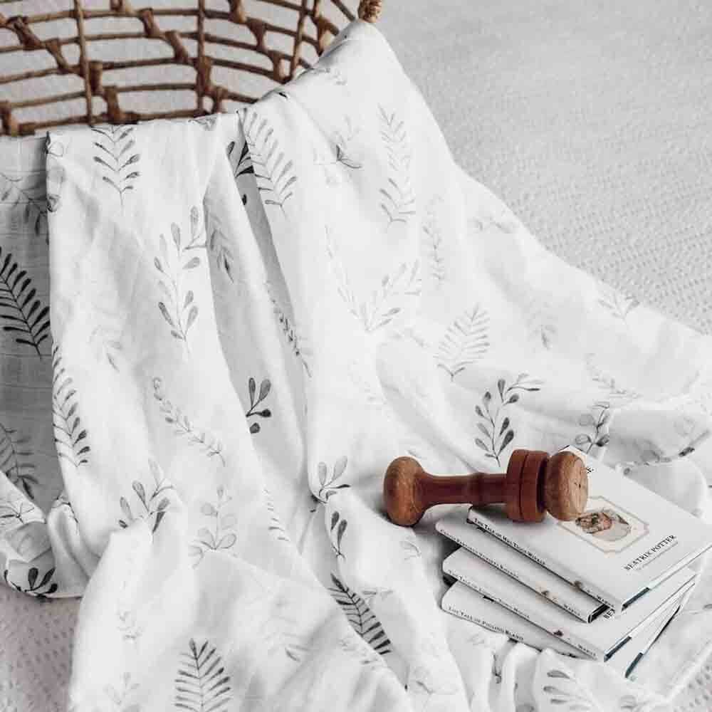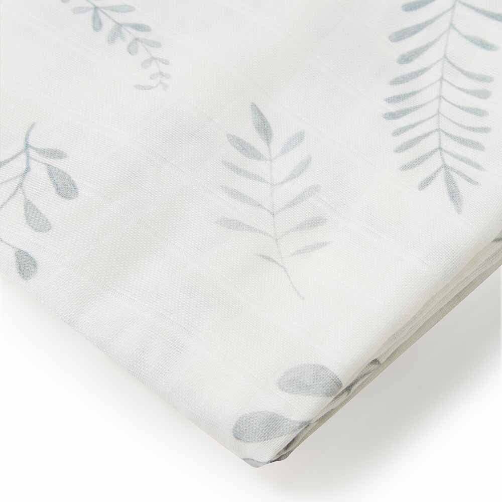 This soft organic cotton muslin wrap features a sweet unisex fern design and is a beautiful multi-purpose wrap ideal for swaddling and wrapping bub.